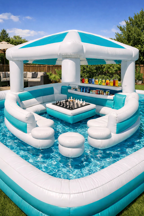 Fabricado con PVC de alta resistencia, este pabellón ofrece una estabilidad superior comparada con flotadores comunes. Su diseño robusto permite que varios adultos se relajen sin balanceos incómodos, convirtiéndose en una inversión duradera que eleva el prestigio de su piscina temporada tras temporada.